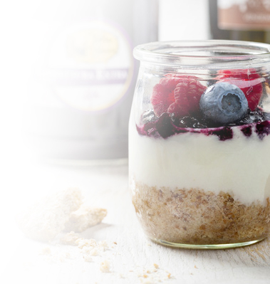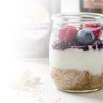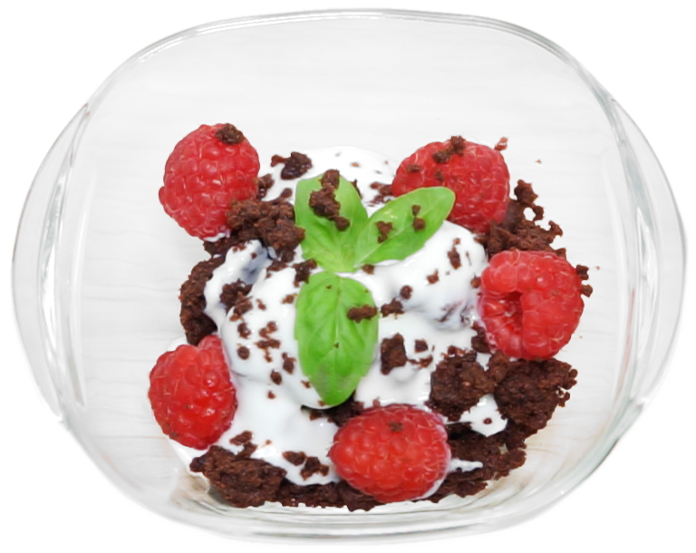 Crumble di cioccolato, yogurt, frutta